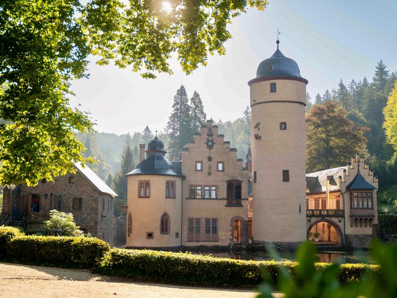 Wie eine scheue Schönheit verbirgt sich das malerische Renaissanceschloss Mespelbrunn in einem stillen Seitental des Spessarts. Mit seinen zarten Türmchen, Erkern und Zinnen, die sich über der spiegelnden Wasserfläche erheben, verzaubert es Besucher aus aller Welt. Seit hier 1957 die Komödie „Das Wirtshaus im Spessart“ gedreht wurde, gilt das Wasserschloss als echter Filmstar. Doch Mespelbrunn lädt nicht nur zum Staunen, sondern auch zum Bewegen ein: Der idyllische Julius-Echter-Pfad führt vom Schloss entlang des Flüsschens Elsava durch stille Wälder, blühende Obsthaine und weite Wiesen bis zur Wallfahrtskirche mit dem berühmten Riemenschneider-Altar – ein wunderbarer Ort, um die Sonne des Nachmittags zu genießen.