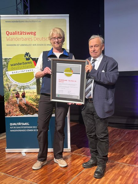 Das RÄUBERLAND – Das Herz im Spessart hat auf der CMT-Urlaubsmesse am 15.01.2023 in Stuttgart zum dritten Mal die Auszeichnung „Qualitätsregion Wanderbares Deutschland“ vom Deutschen Wanderverband erhalten.